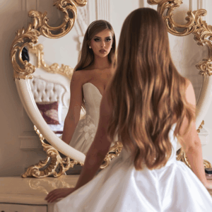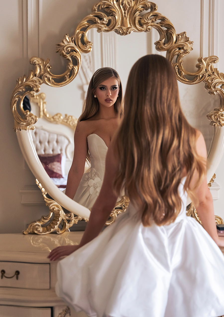 This dress reflects the purity of spirit, the sincerity of love, and the elegance of a woman living her most beautiful moment.